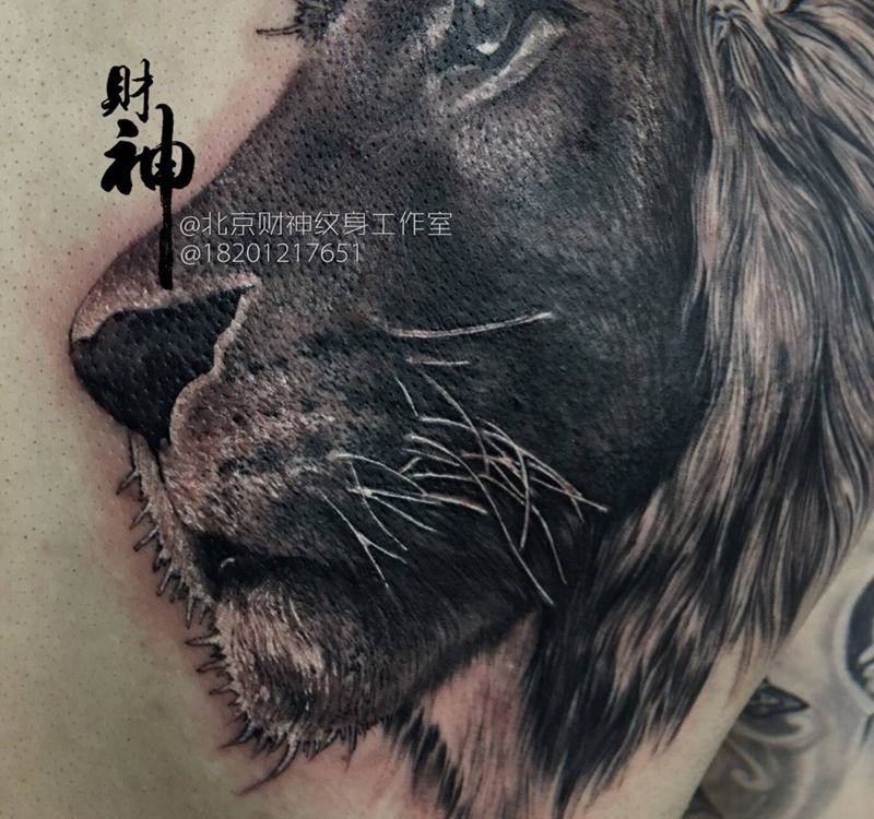 当前位置: 首页 >北京市纹身店-财神纹身工作室纹身图案>狮子纹身图片_肩部背部欧美写实纹身图案
