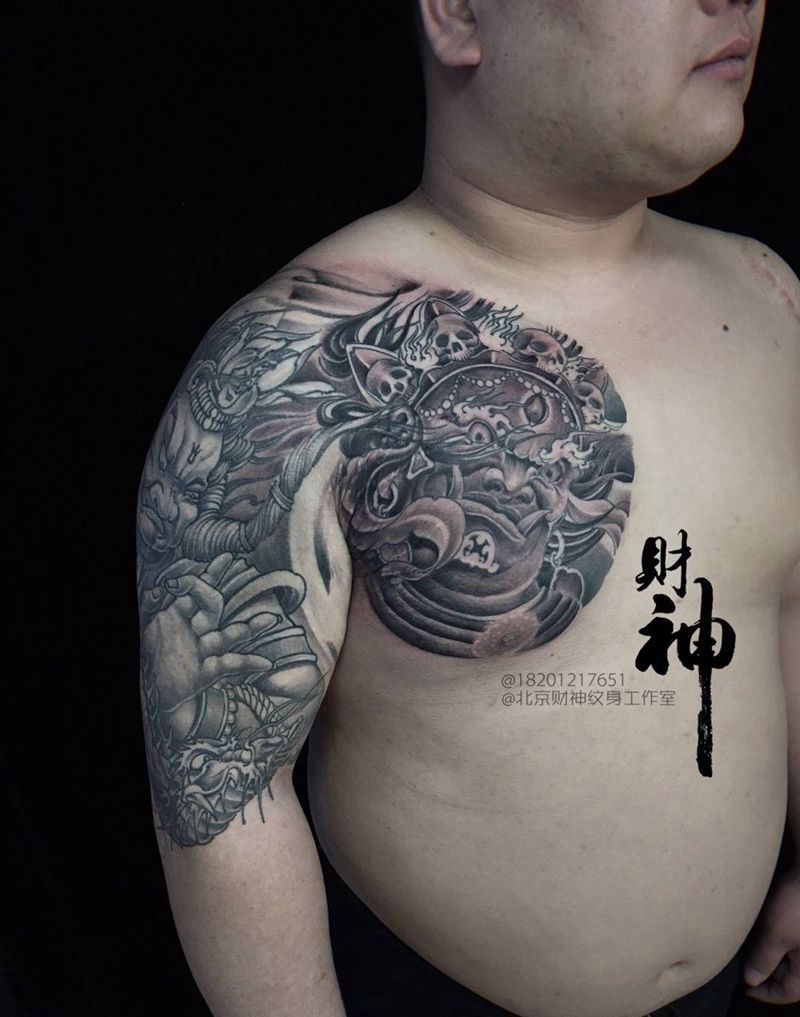 不动明王大黑天纹身图片_胸部肩部新传统纹身图案