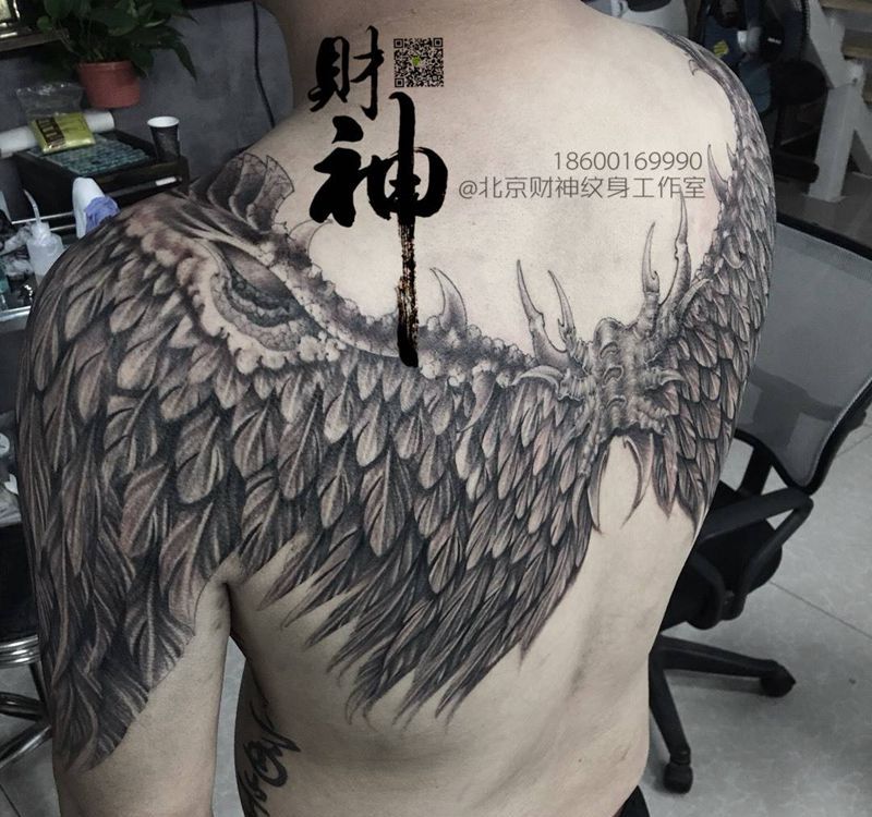 黑灰满背纹身图案
