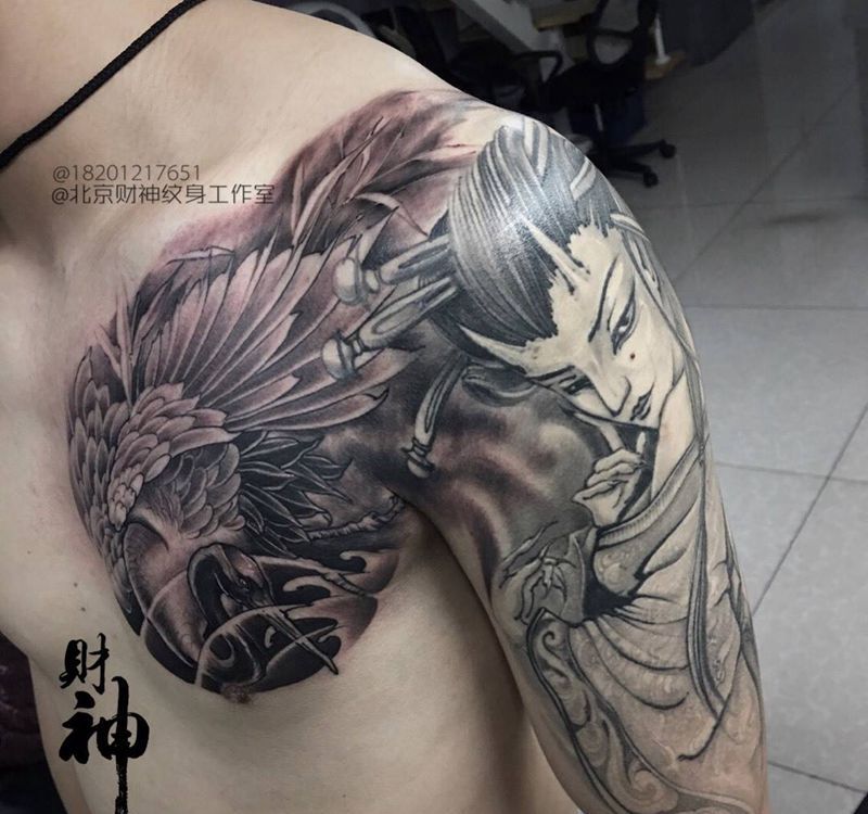 • 纹身吧推荐的披肩图腾半胛纹身图案作品展示
