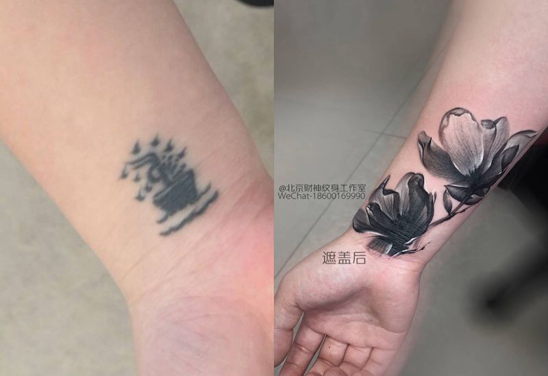 遮盖纹身图片_手臂水墨水彩纹身图案
