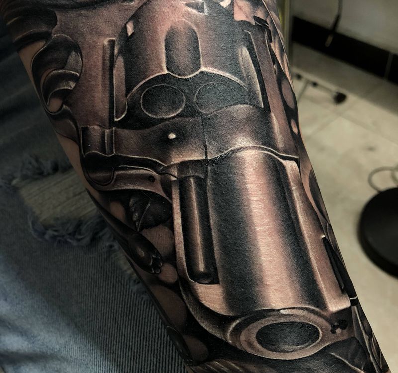 当前位置: 首页 >北京市纹身店-财神纹身工作室纹身图案>枪花纹身图片_手臂欧美写实纹身图案