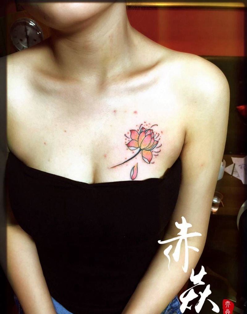 • 女性大花胸纹身_43张霸气漂亮的女性大花胸纹身图案作品
