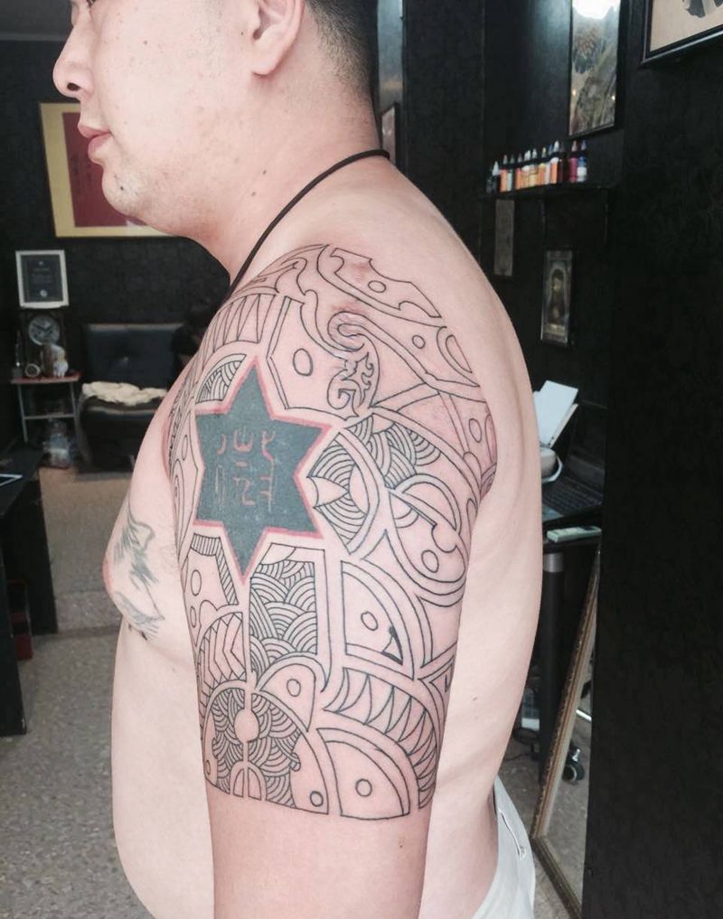 • 纹身吧推荐的披肩图腾半胛纹身图案作品展示