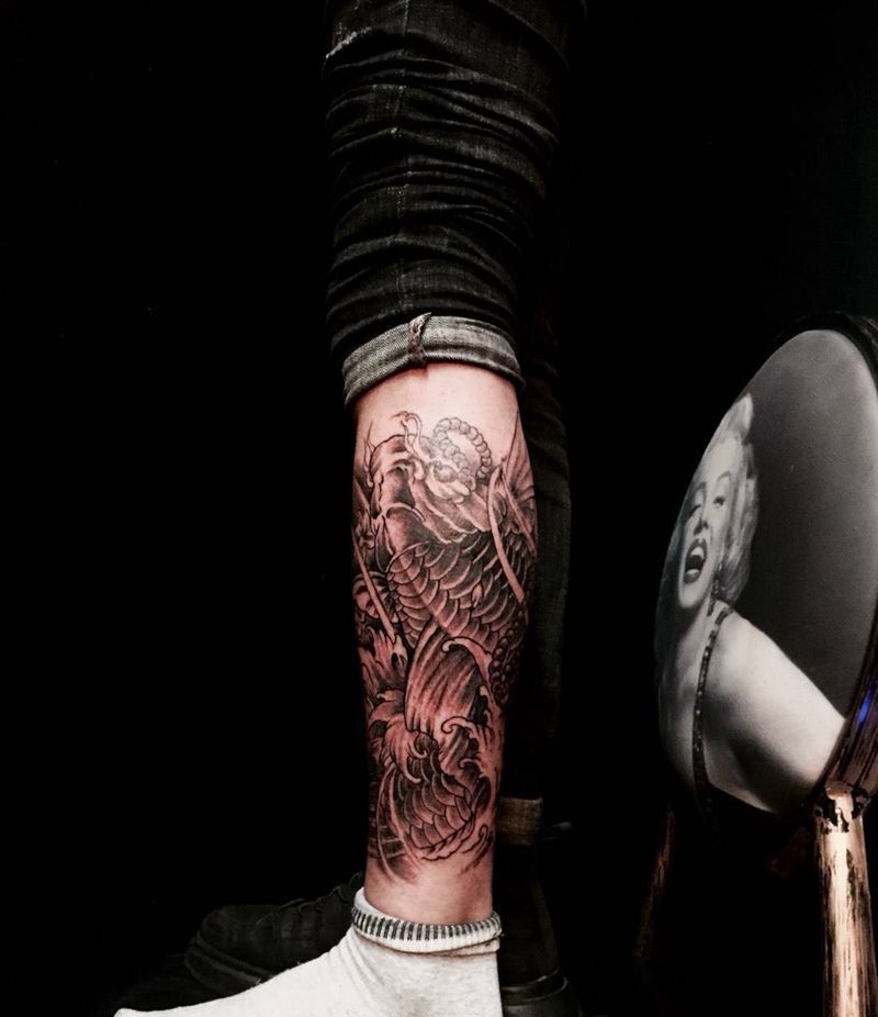 • T网红王老大花腿龙纹身图片_腿部新传统纹身图案