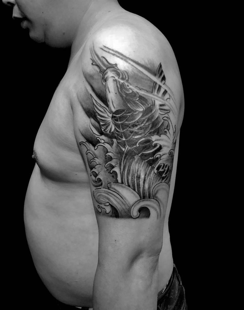 当前位置: 首页 >北京市纹身店-赤焱纹身纹身图案>锦鲤遮盖蝎子纹身图片_