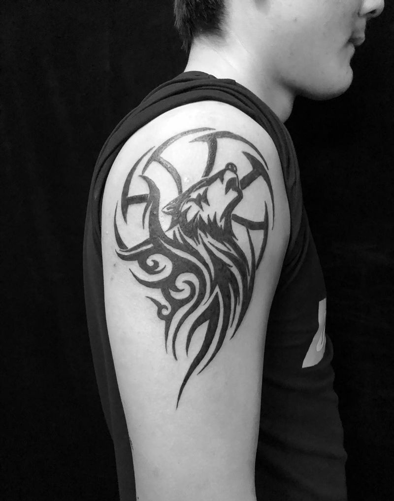 • 纹身吧推荐的披肩图腾半胛纹身图案作品展示