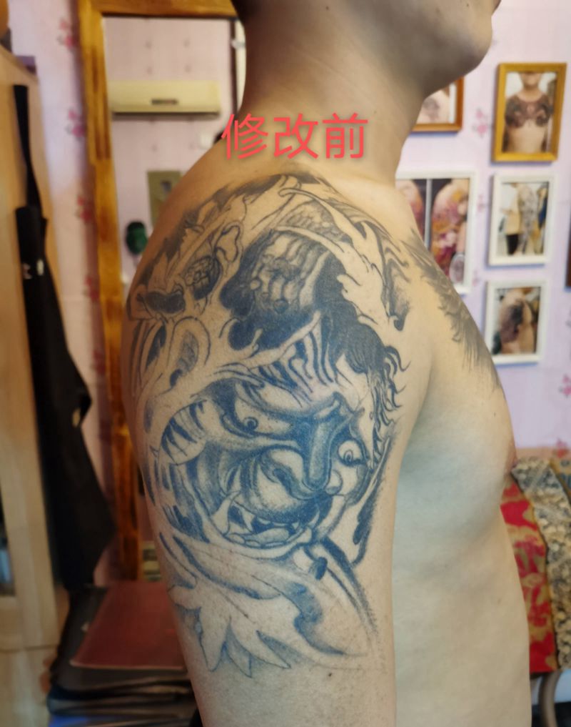当前位置: 首页 >北京市纹身店-金龙堂纹身纹身图案>修改遮盖未完成纹身图片_肩部胸部新传统纹身图案