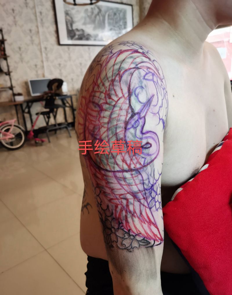 当前位置: 首页 >北京市纹身店-金龙堂纹身纹身图案>遮盖作品,老传统鹤纹身图片_手臂老传统纹身图案