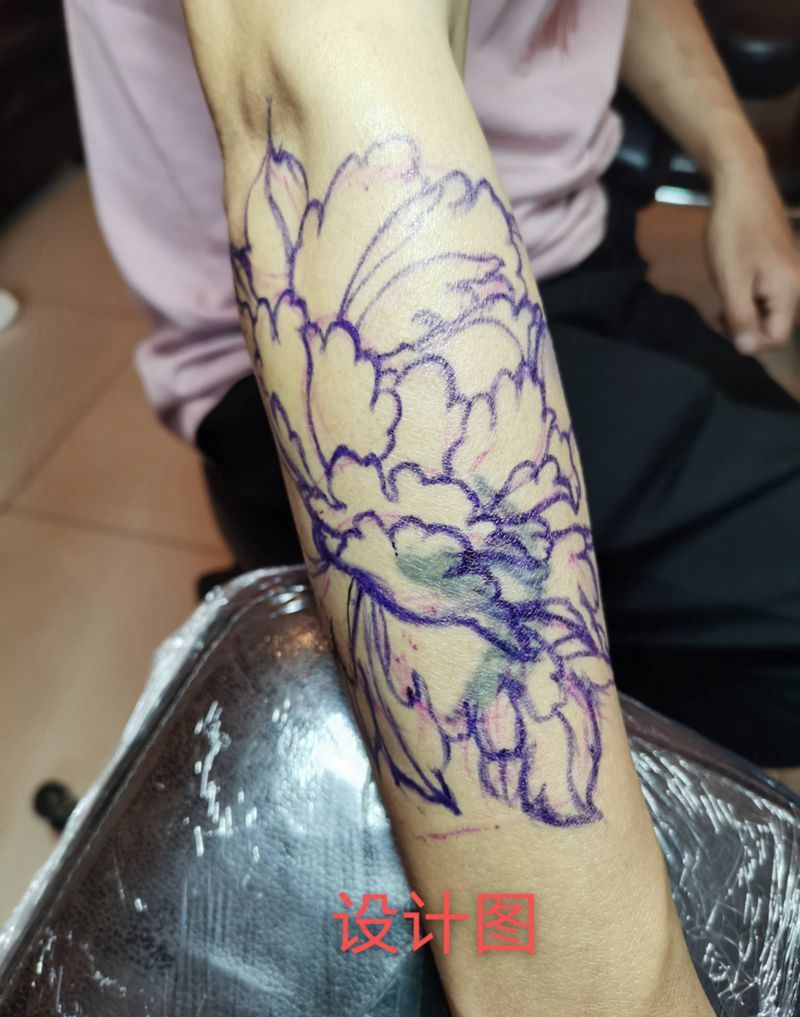 遮盖作品,小臂牡丹纹身图片_手臂新传统纹身图案