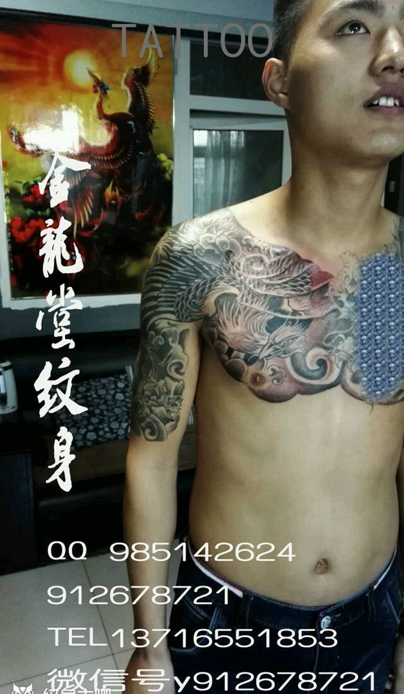 当前位置: 首页 >北京市纹身店-金龙堂纹身纹身图案>凤凰半甲纹身图片_胸部传统动物纹身图案
