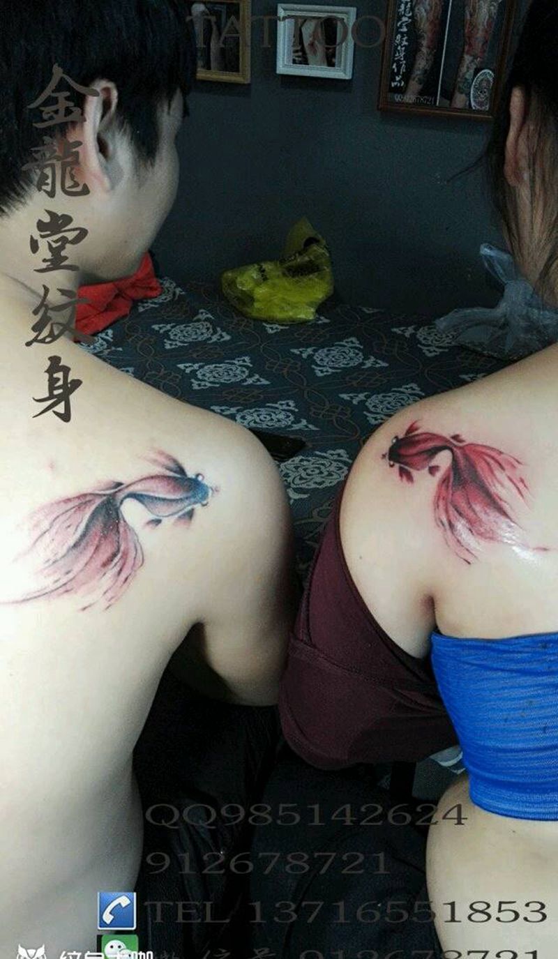 当前位置: 首页 >北京市纹身店-金龙堂纹身纹身图案>情侣金鱼纹身纹身图片_肩部清新国画动物成品纹身图案