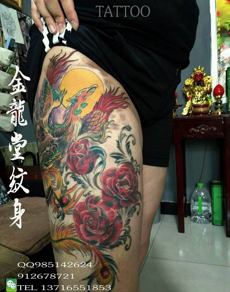 当前位置: 首页 >北京市纹身店-金龙堂纹身纹身图案>麻药美女大腿彩色凤凰完成/纹身图片_臀部腿部传统动物成品纹身图案