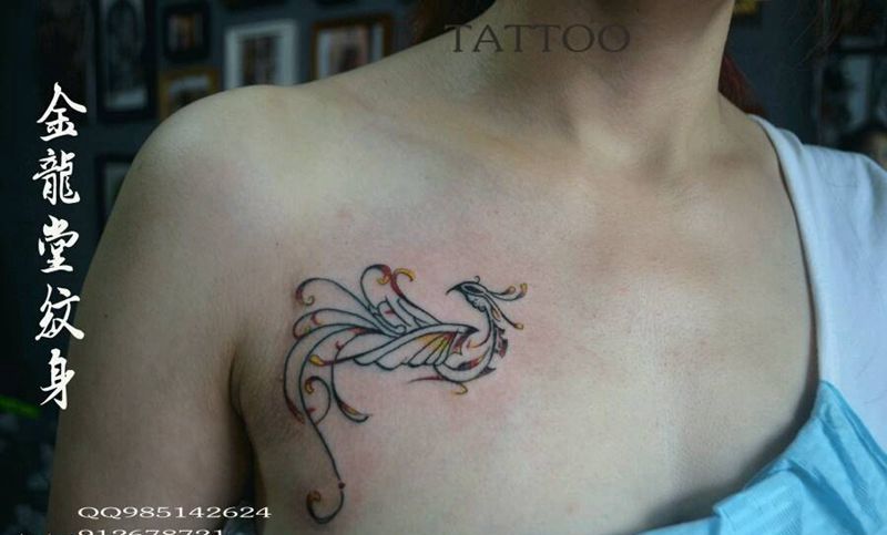 原创,小凤凰纹身纹身图片_胸部传统清新动物成品手稿纹身图案
