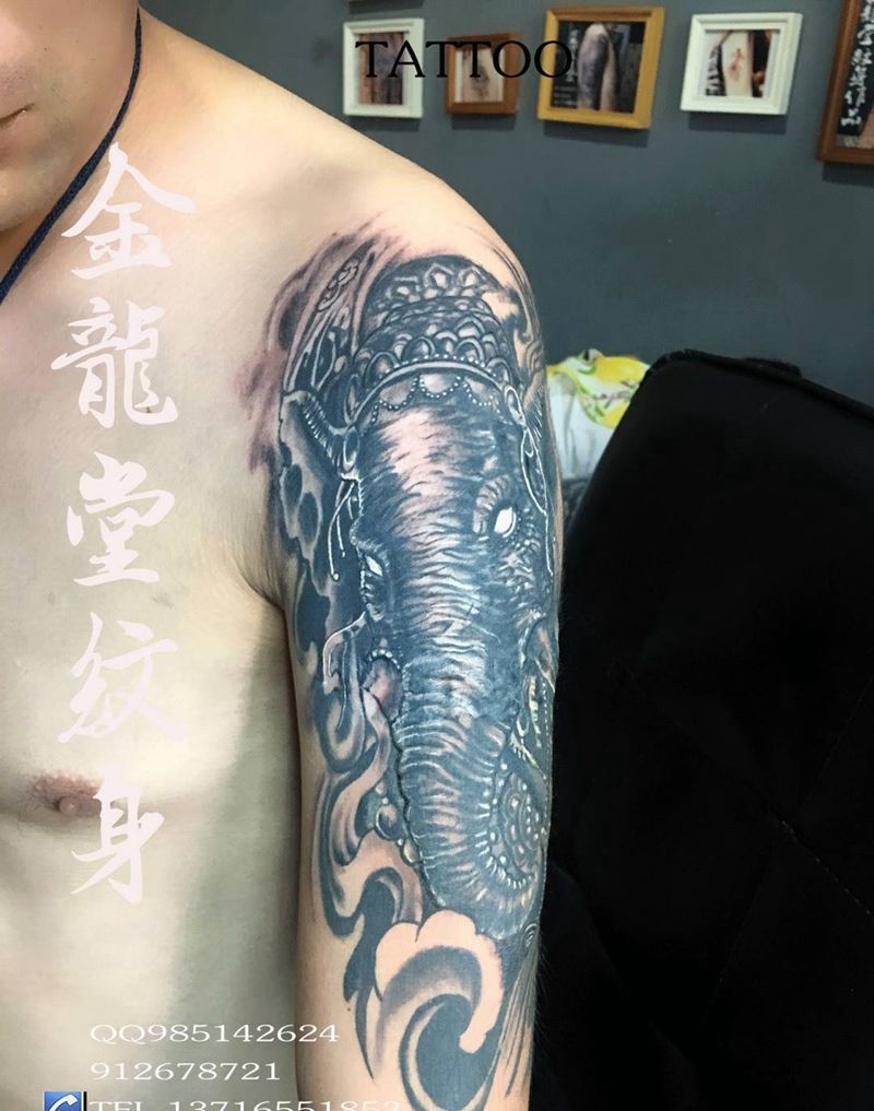 当前位置: 首页 >北京市纹身店-金龙堂纹身纹身图案>修改作品象神纹身图片_成品肩部传统宗教纹身图案