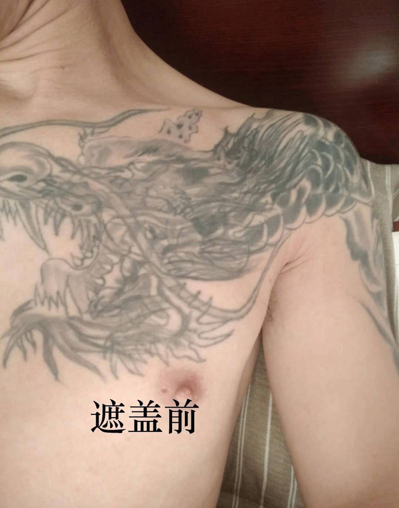 暴力遮盖过肩龙纹身图片_成品肩部胸部手臂传统动物纹身图案