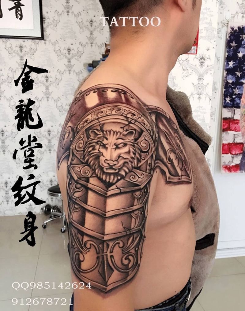 当前位置: 首页 >北京市纹身店-金龙堂纹身纹身图案>盔甲纹身图片_成品肩部胸部传统动物纹身图案