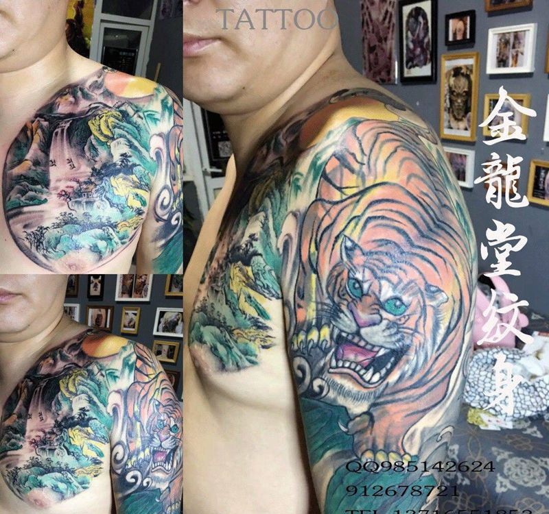 当前位置: 首页 >北京市纹身店-金龙堂纹身纹身图案>修改失败纹身添加纹身图片_成品胸部肩部传统写实动物原创纹身图案