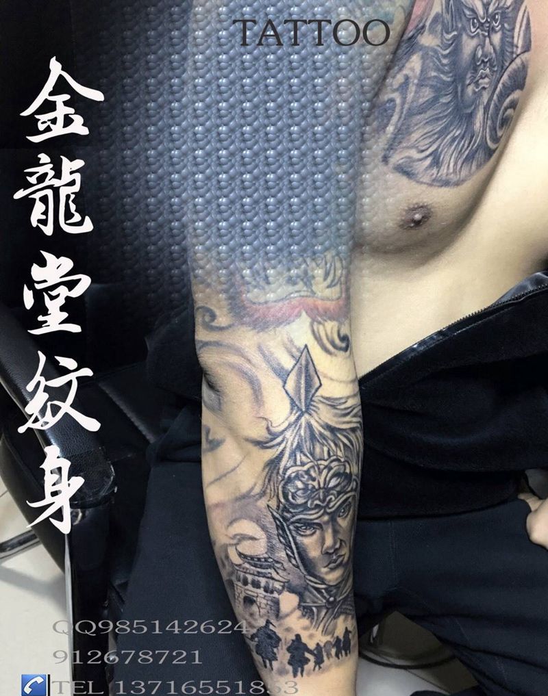 当前位置: 首页 >北京市纹身店-金龙堂纹身纹身图案>老图接花臂纹身图片_成品胸部肩部手臂传统鬼神宗教原创纹身图案