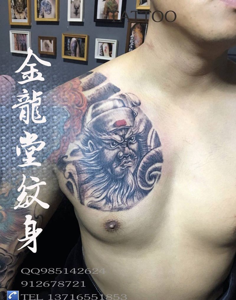 老图接花臂纹身图片_成品胸部肩部手臂传统鬼神宗教原创纹身图案