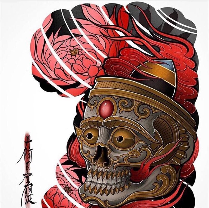 一组9张般若纹身手