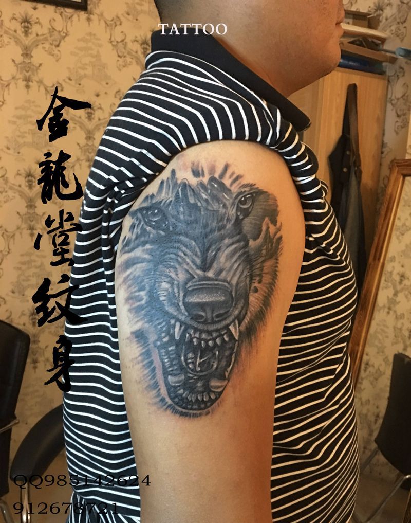 当前位置: 首页 >北京市纹身店-金龙堂纹身纹身图案>遮盖作品狼头纹身图片_手臂新传统纹身图案