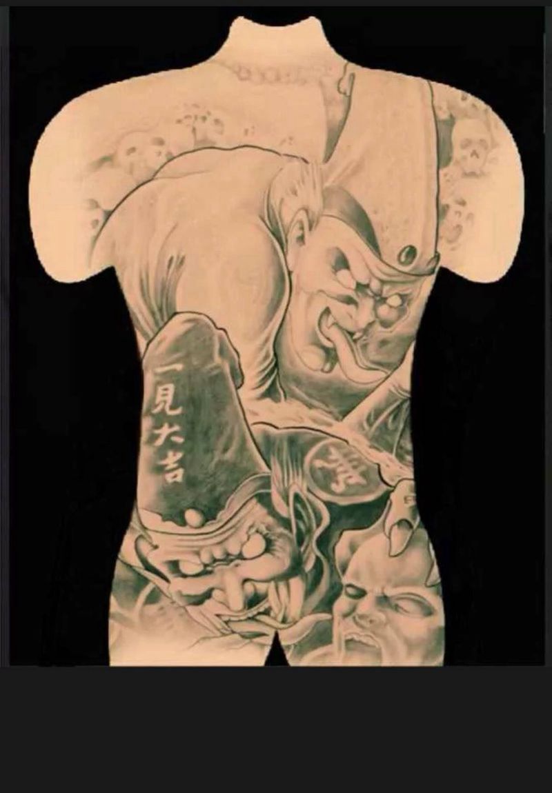 • 黑灰满背纹身图案