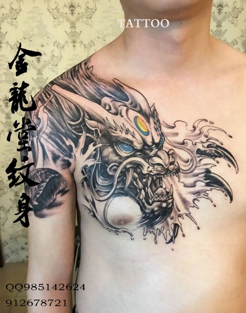 过肩龙纹身图片_肩部胸部新传统纹身图案