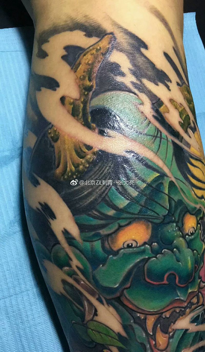• T网红王老大花腿龙纹身图片_腿部新传统纹身图案