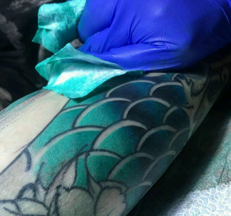 • T网红王老大花腿龙纹身图片_腿部新传统纹身图案