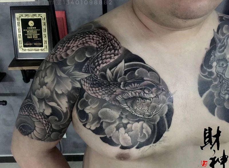 黑灰满背纹身图案