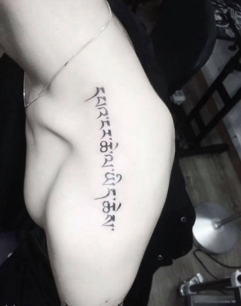 藏文纹身图片_肩部手臂老传统藏文纹身图案