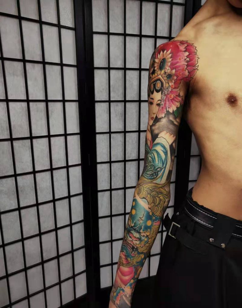 当前位置: 首页 >北京市纹身店-小松刺青工作室纹身图案>唐狮花旦花臂!纹身图片_手臂新传统纹身图案