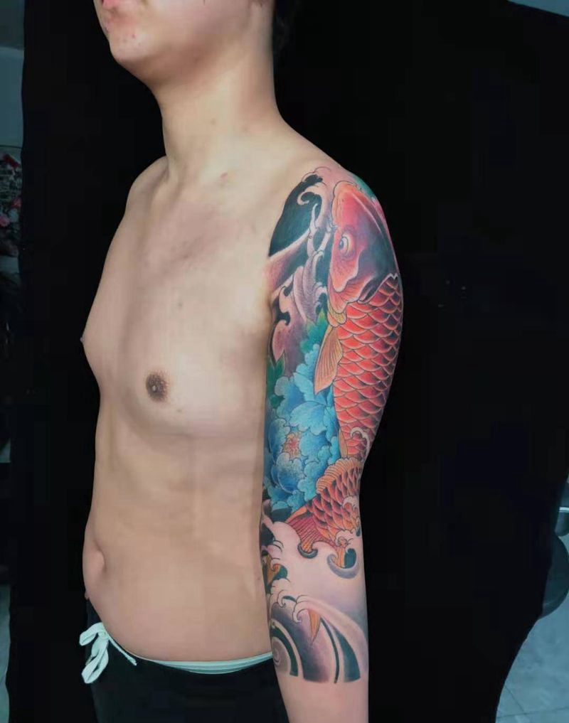 当前位置: 首页 >北京市纹身店-小松刺青工作室纹身图案>锦鲤七分袖!完成!纹身图片_手臂新传统纹身图案