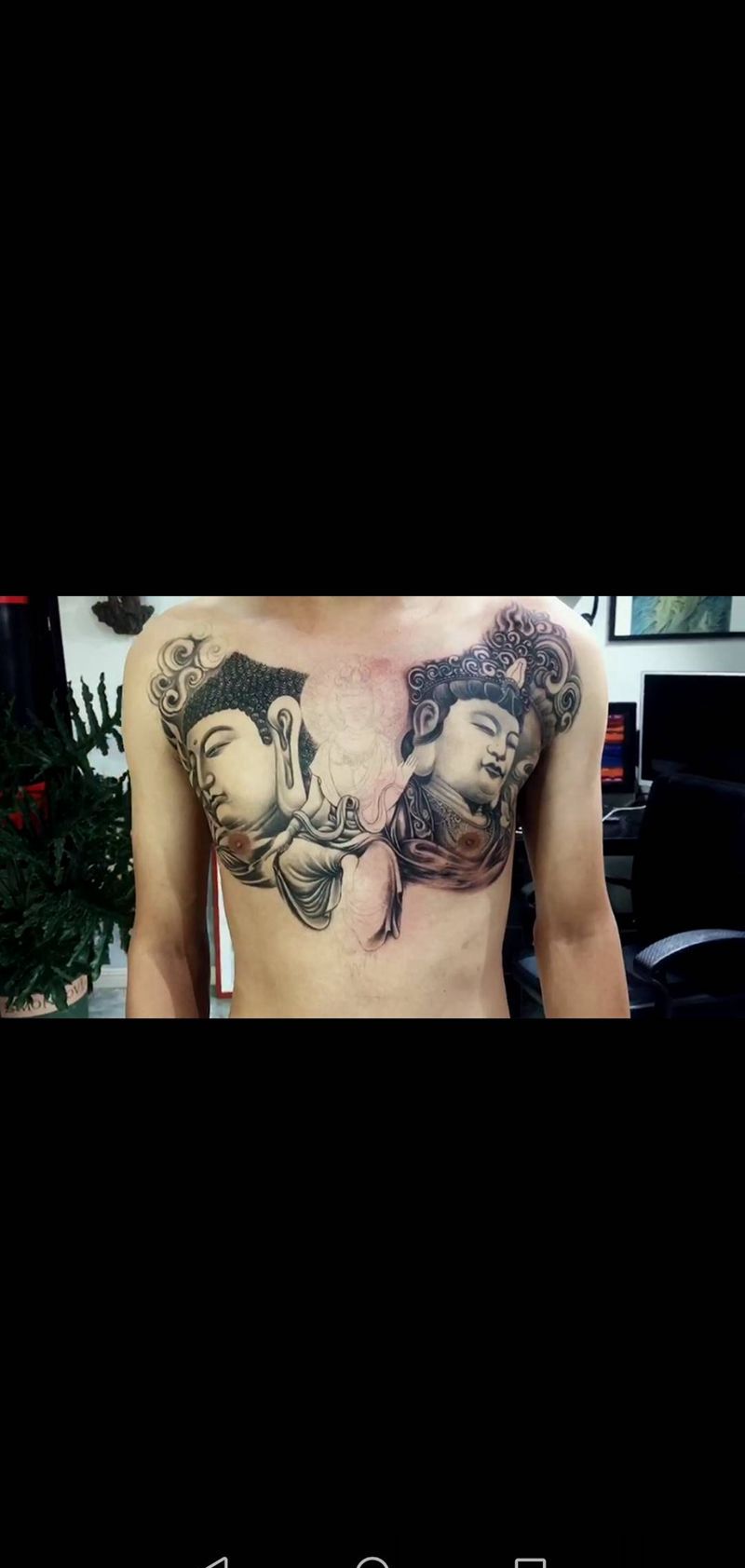 新款花胸三面佛纹身图片_胸部新传统纹身图案