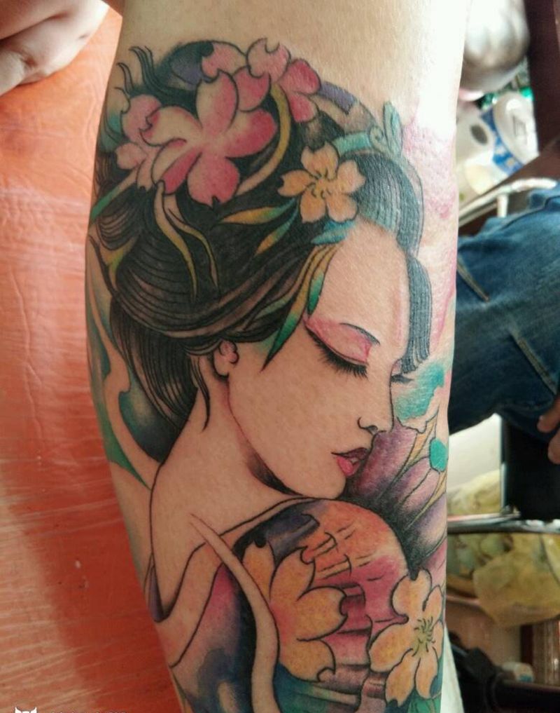 北京小松刺青 泼墨彩色艺妓作品纹身图片_