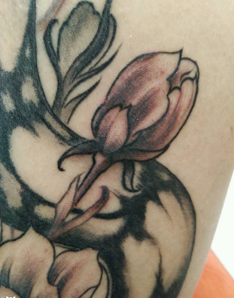 当前位置: 首页 >北京市纹身店-小松刺青工作室纹身图案>小松刺青 大腿蛇与牡丹纹身图片_腿部传统动物纹身图案