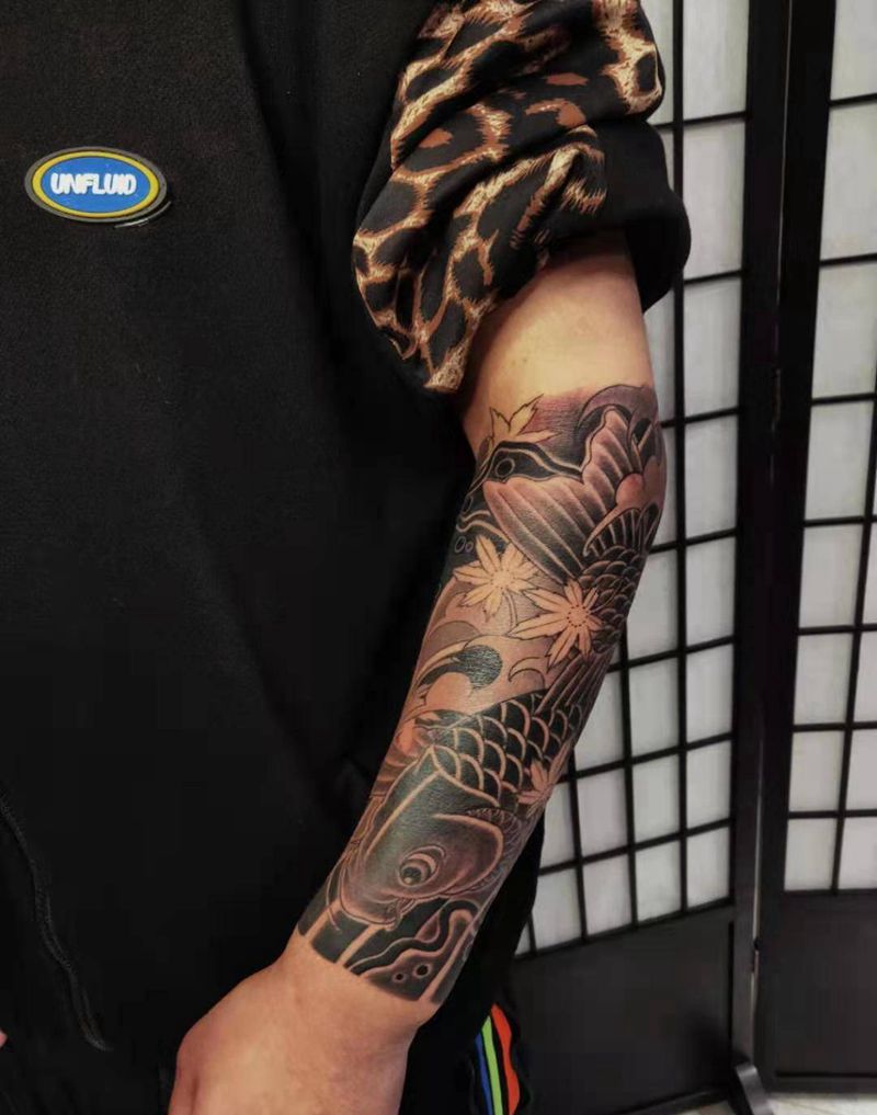 日式老传统锦鲤纹身图片_手臂老传统纹身图案