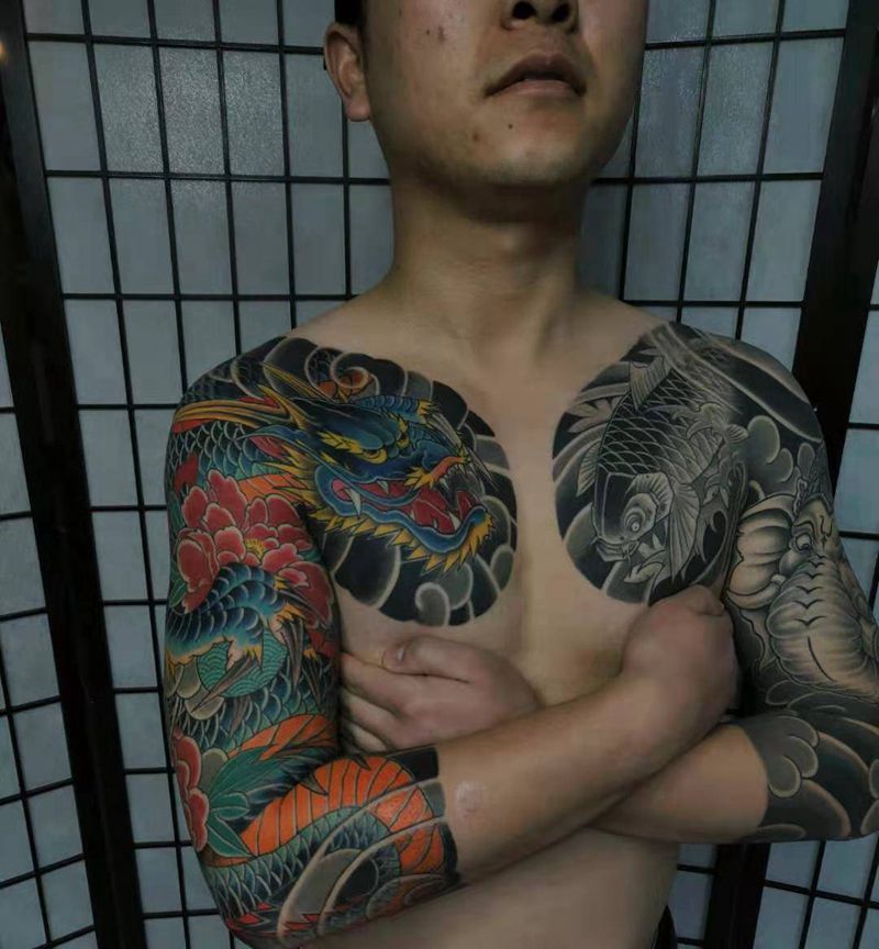 • T云龙九郎纹身图片_背部老传统云龙九郎纹身图案