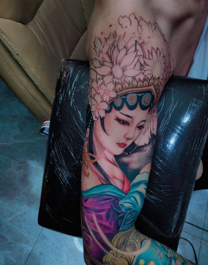 当前位置: 首页 >北京市纹身店-小松刺青工作室纹身图案>花旦搭配唐狮,花臂!纹身图片_手臂新传统纹身图案
