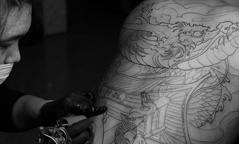 当前位置: 首页 >北京市纹身店-小松刺青工作室纹身图案>满背锦鲤跃龙门!纹身图片_背部新传统纹身图案