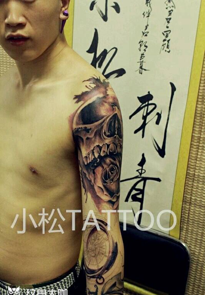 当前位置: 首页 >北京市纹身店-小松刺青工作室纹身图案>骷髅花臂未完成纹身图片_