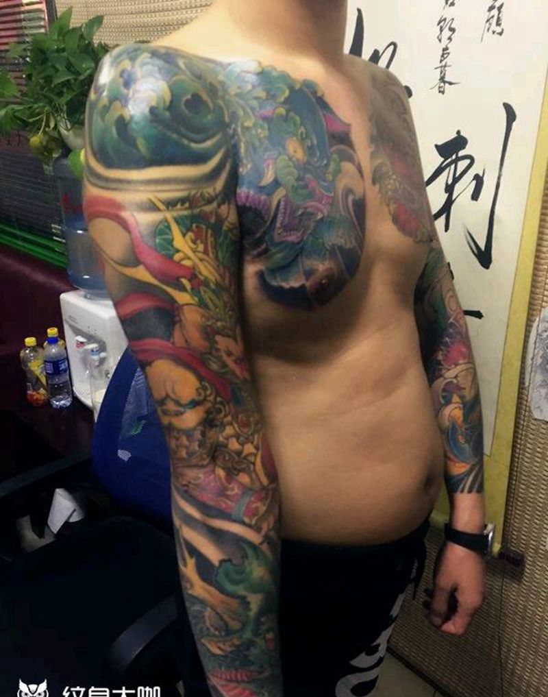 当前位置: 首页 >北京市纹身店-小松刺青工作室纹身图案>重彩双花臂半胛遮盖完成纹身图片_