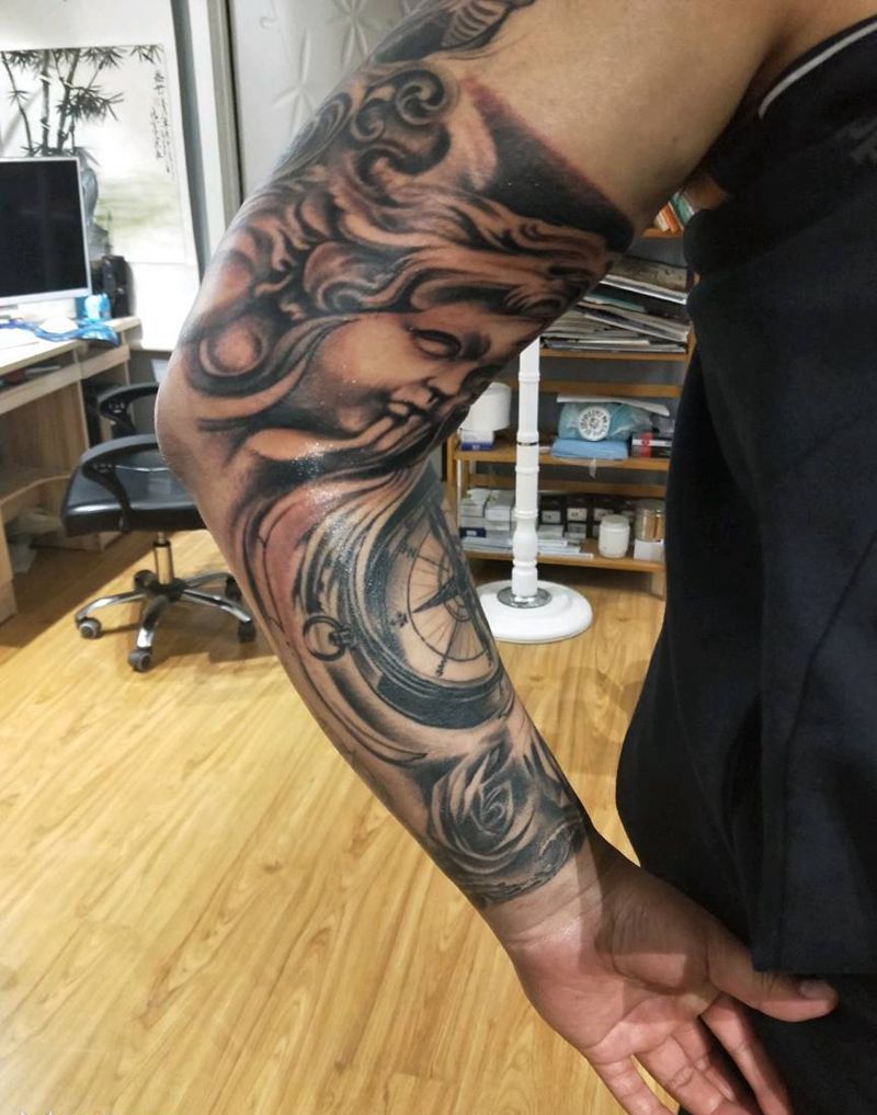当前位置: 首页 >北京市纹身店-小松刺青工作室纹身图案>欧美写实花臂进度纹身图片_
