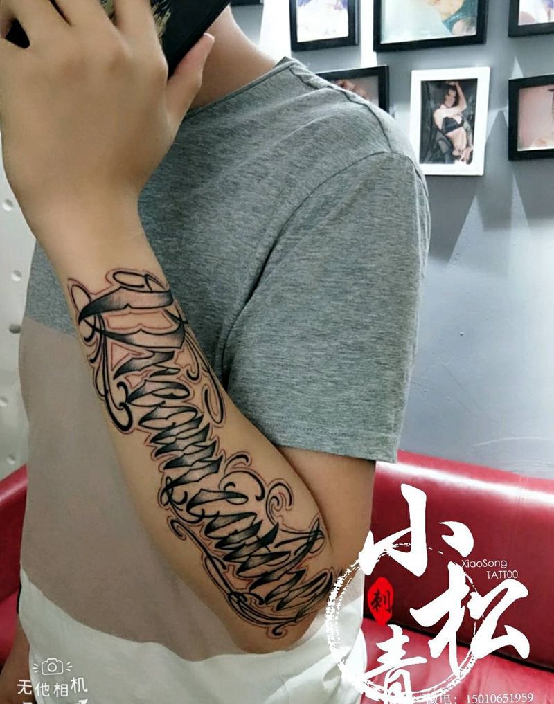 花字体纹身图片_手臂欧美字符成品纹身图案