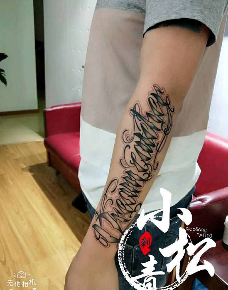 花字体纹身图片_手臂欧美字符成品纹身图案
