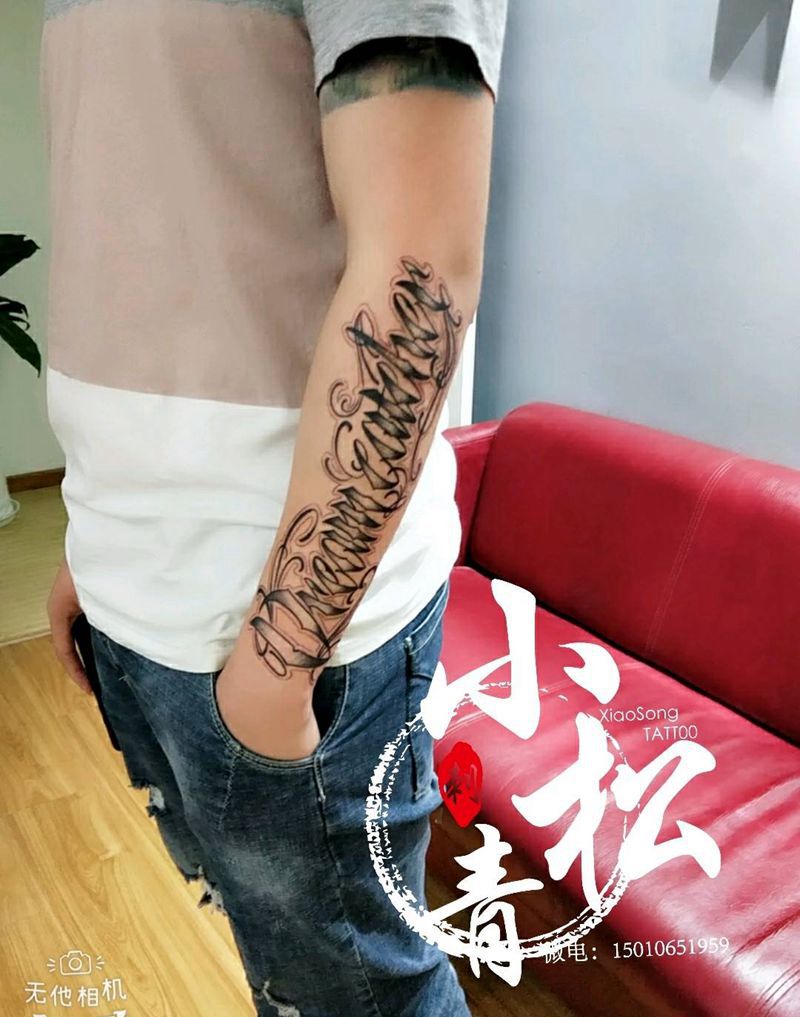 当前位置: 首页 >北京市纹身店-小松刺青工作室纹身图案>花字体纹身图片_手臂欧美字符成品纹身图案