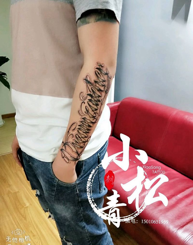 当前位置: 首页 >北京市纹身店-小松刺青工作室纹身图案>花字体纹身图片_手臂欧美字符成品纹身图案