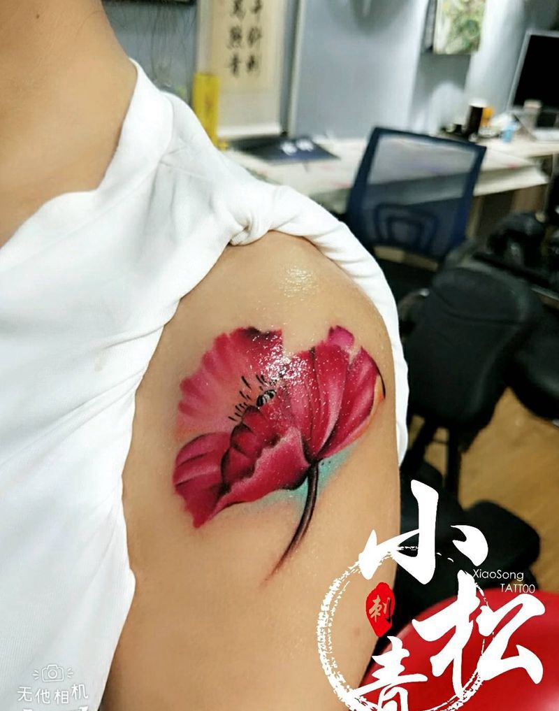 当前位置: 首页 >北京市纹身店-小松刺青工作室纹身图案>花朵纹身图片_肩部清新植物成品纹身图案