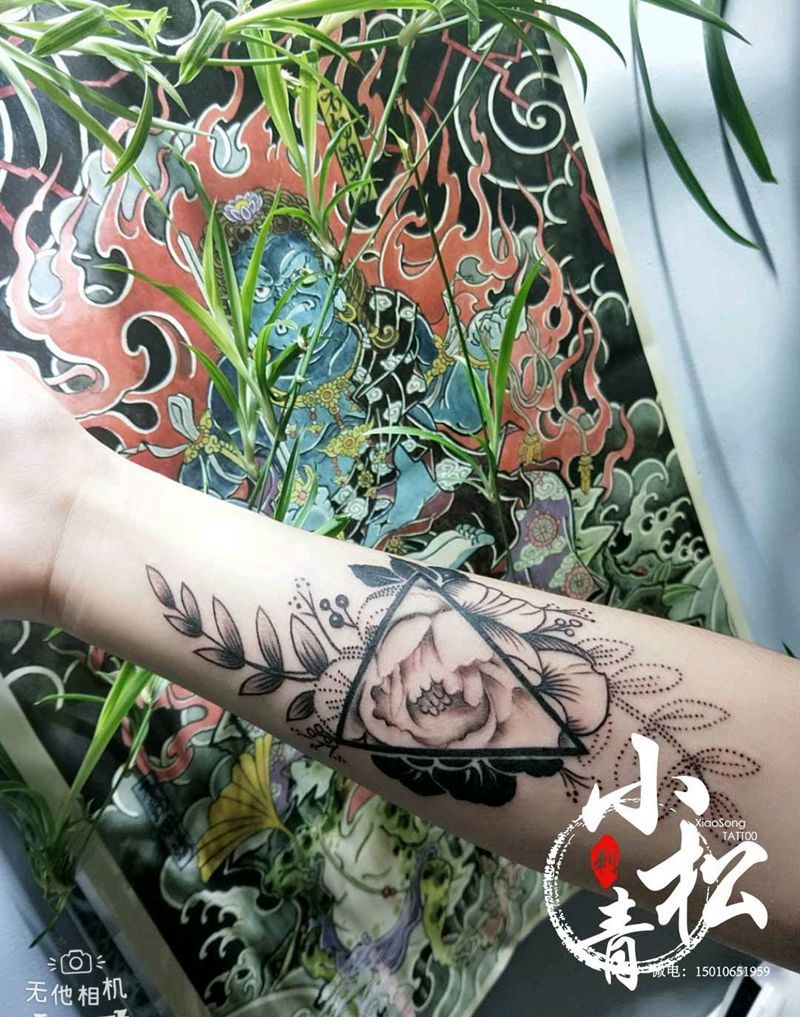 清新几何花纹身图片_手臂清新几何成品纹身图案